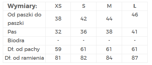 | Length from armpit | 59 | 61 | 61 | 61 |