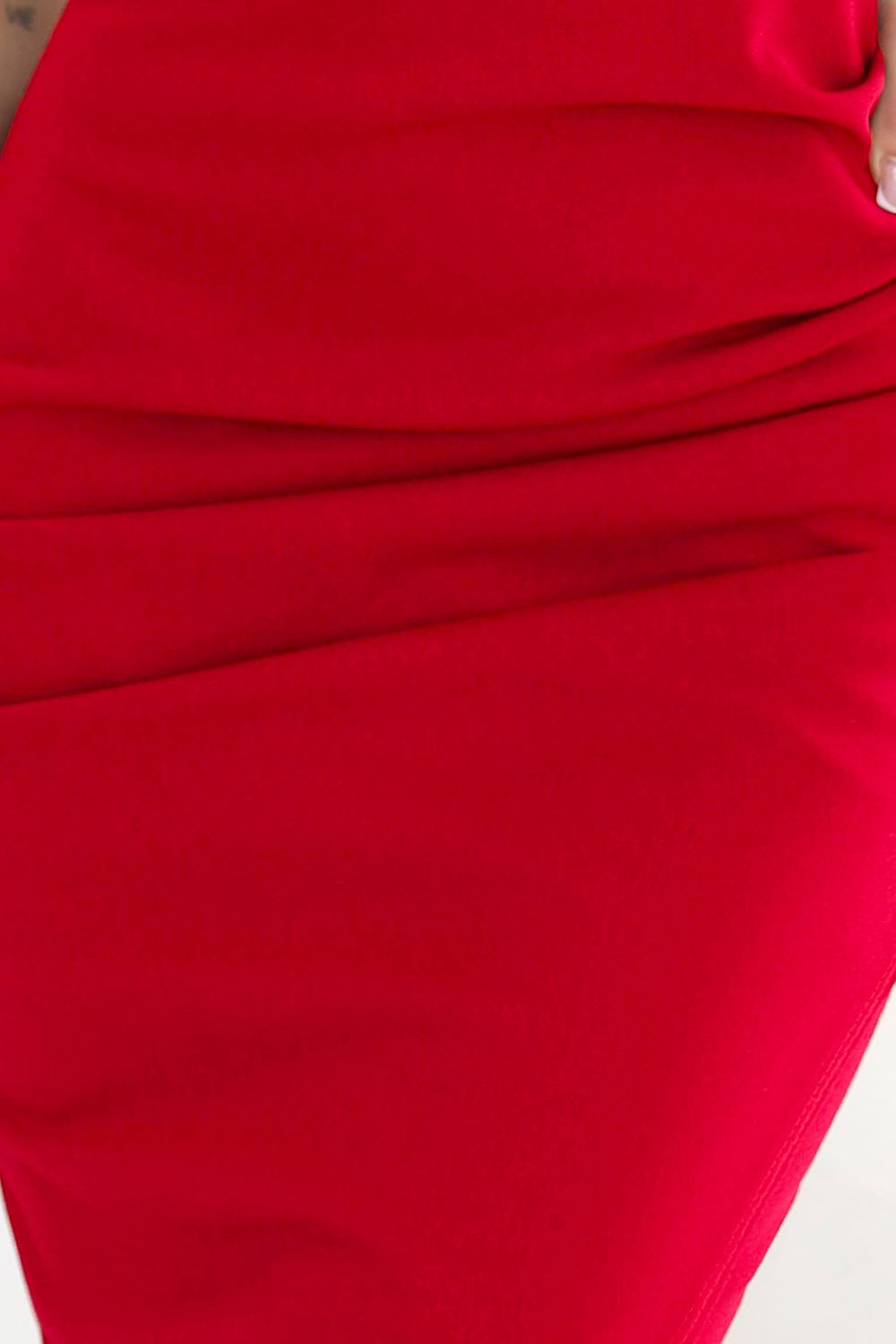 Sinnliches rotes Kleid mit figurbetontem Schnitt und Dekolleté – Numoco Basic | Europäisches Produkt