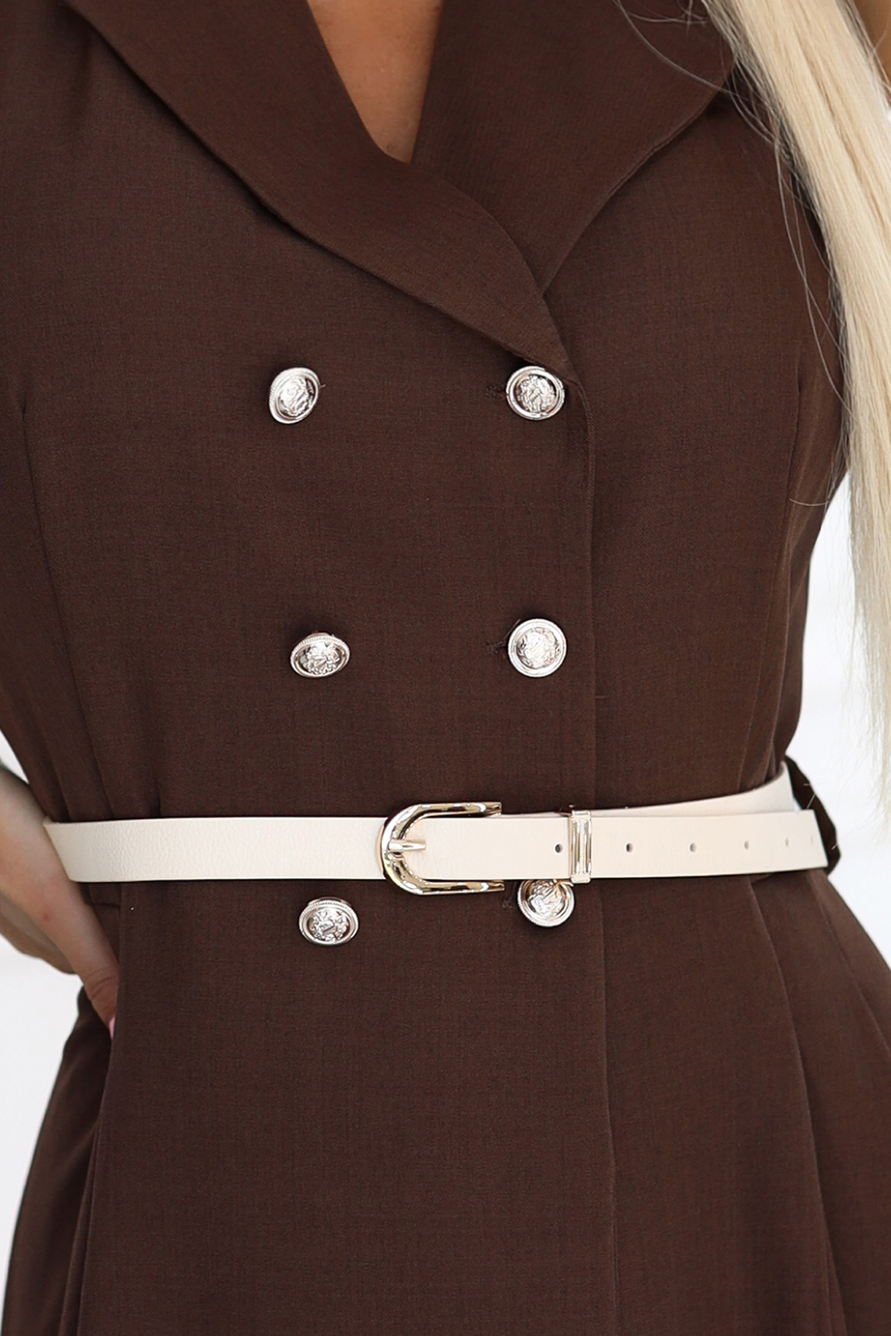 596-4 Elegantes Midi-Hemdblusenkleid mit goldenen Knöpfen und Gürtel - Schokolade