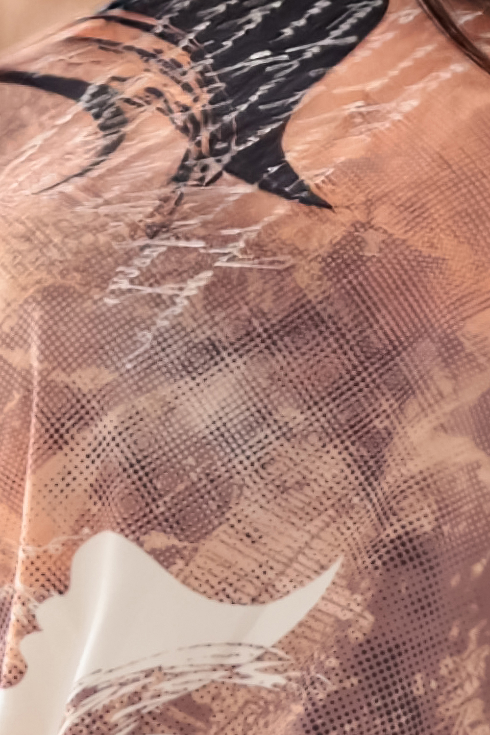 Das Muster in Kupfer-, Beige- und Schwarztönen verleiht dem Styling einen außergewöhnlichen Charakter. Der Boot-Ausschnitt kann auch sinnlich auf eine Schulter fallen gelassen getragen werden. Das Modell hat 3/4-Ärmel und praktische Taschen. Ideal sowohl für tägliche Treffen als auch für Abendausflüge.